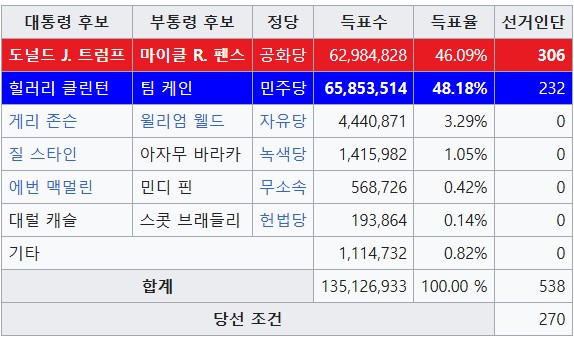힐러리 후보처럼 전체 유권자 투표에서 약 3백만 정도 차로 표를 많이 얻었음에도 불구하고 선거인단 수에서 밀려 트럼프가 당선이 된 사례입니다.