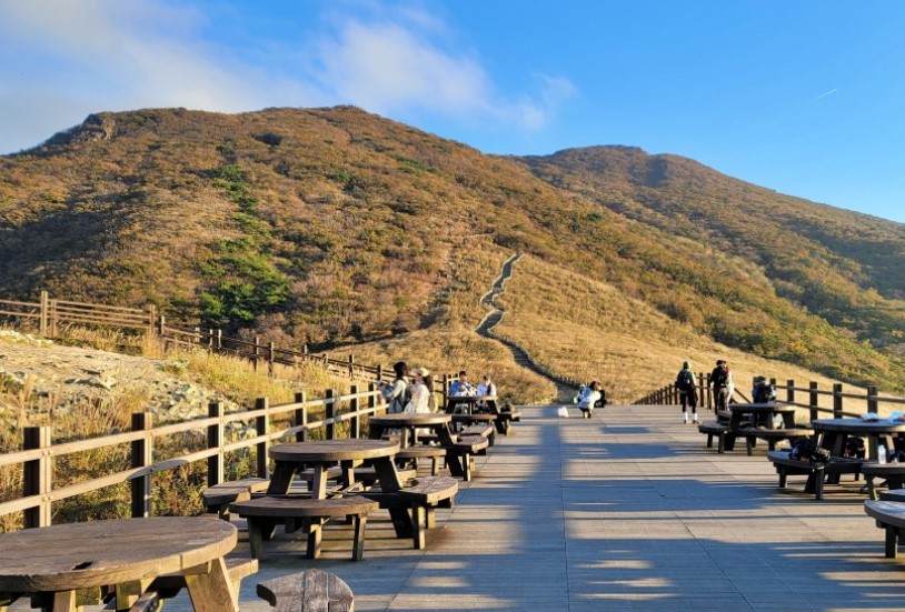# 단점: 간월재 등산 입구까지 걸어서 15분 정도 걸림.