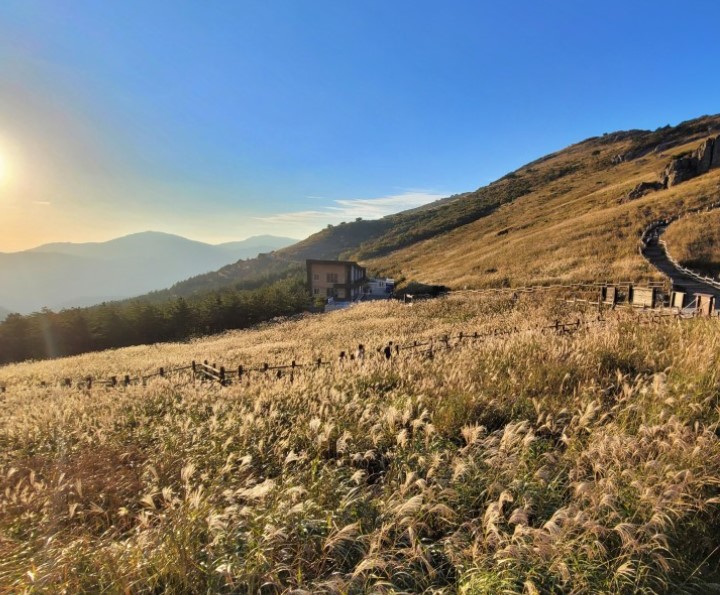 노을이 질 때 가면 새로운 모습의 억새 평원의 모습을 볼 수 있어요.